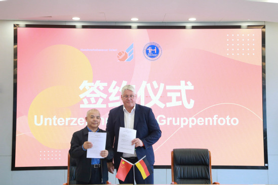 2024年4月19日9:30,德国HWK Erfurt 手工业行会总裁一行来访我校签署汽车服务工程专业国际课程合作续约协议,签约仪式于明华楼五楼远程会议中心举行。出席本次会议的有:德国埃尔福特手工业行会总裁Thomas Malcherek、国际教育项目主管Patricia Roth、校长叶才福、人工智能学院院长凌旭峰、副院长吕博、顾问林军、汽车服务工程专业负责人石玲、程志青,以及国际交流处教师赵诗佳,老版新葡萄8883国际官网教授陈莹。本次会议由吕博老师主持。