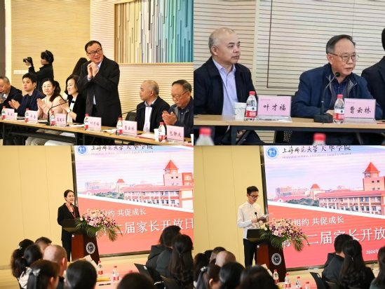 “天华师资队伍投入度高,教学目标达成度高,校园文化辨识度高,感谢天华对本次家长开放日精心周到的安排,让我此刻满满的幸福感”“花一天时间深入体验孩子在校一天的生活,亲眼见证他们的成长与变化,参与孩子的学习规划,不虚此行”“感谢天华让孩子找到了个人兴趣和发展方向,辅导员对学生用心用情的关爱和帮助让我们家长安心放心暖心”……上午10点图书馆四楼报告厅里气氛热烈,家长代表们纷纷点赞本次家长开放日的组织和安排。学校党委书记高建华、校长叶才福,党委副书记许岳、党委副书记兼学保处处长曹云林,国际交流处、教务处、学保处等职能处室领导及二级学院党总支书记们与家长以座谈会的形式进行了面对面交流。