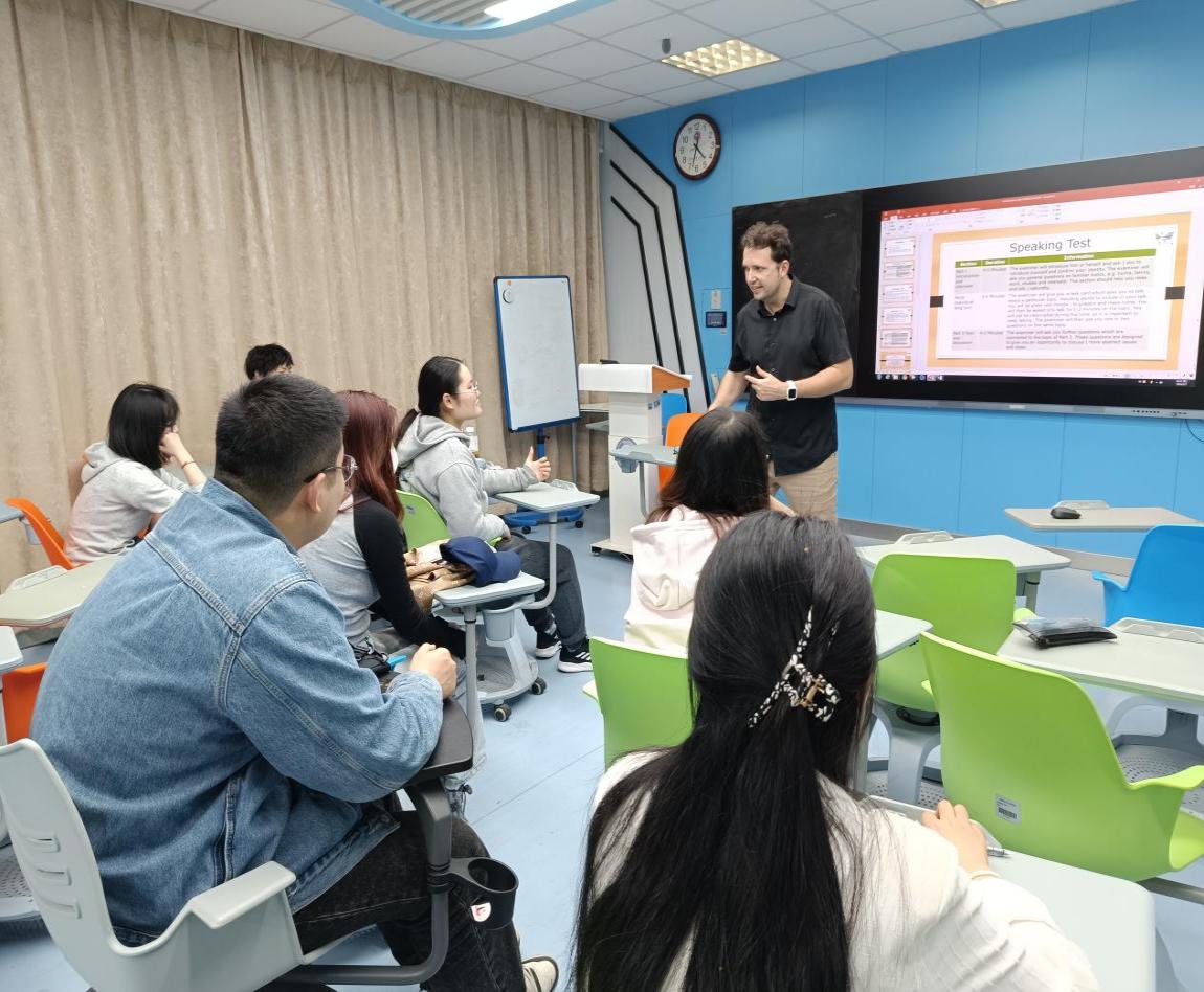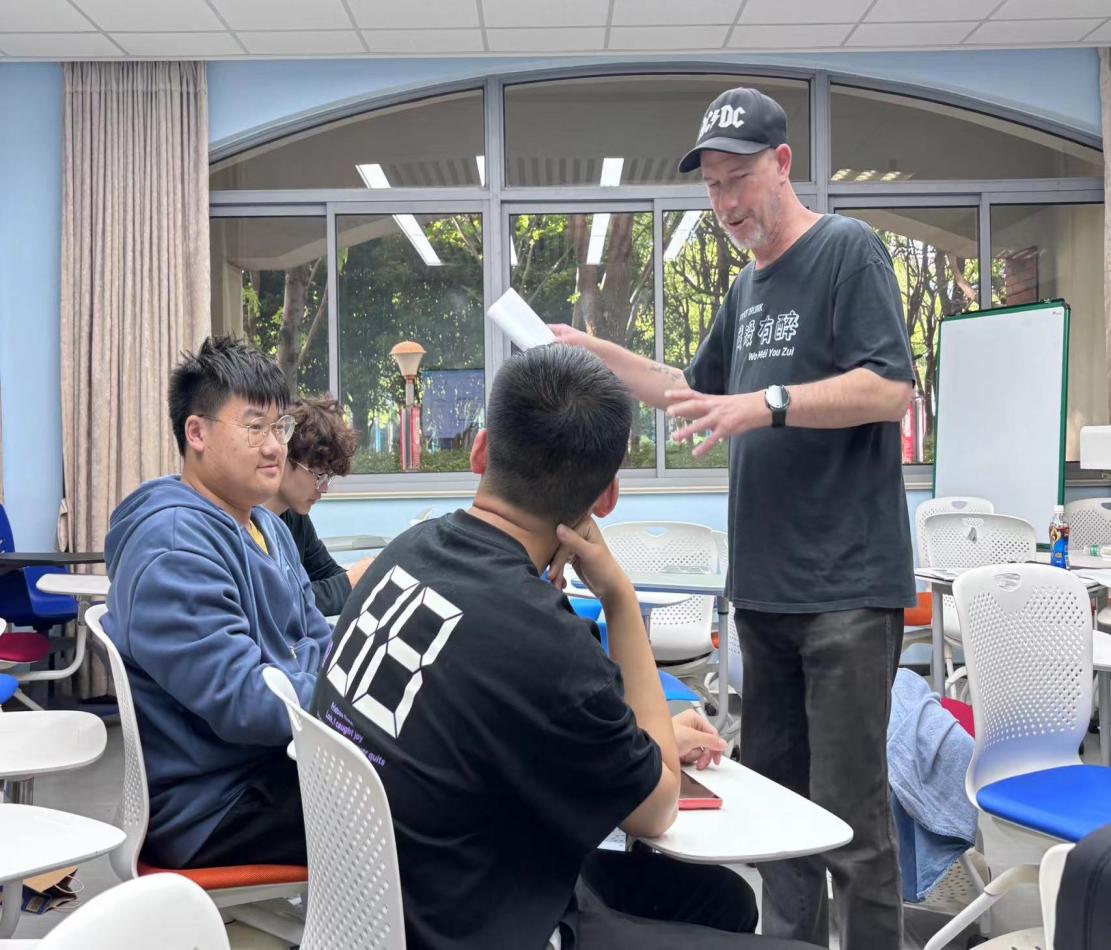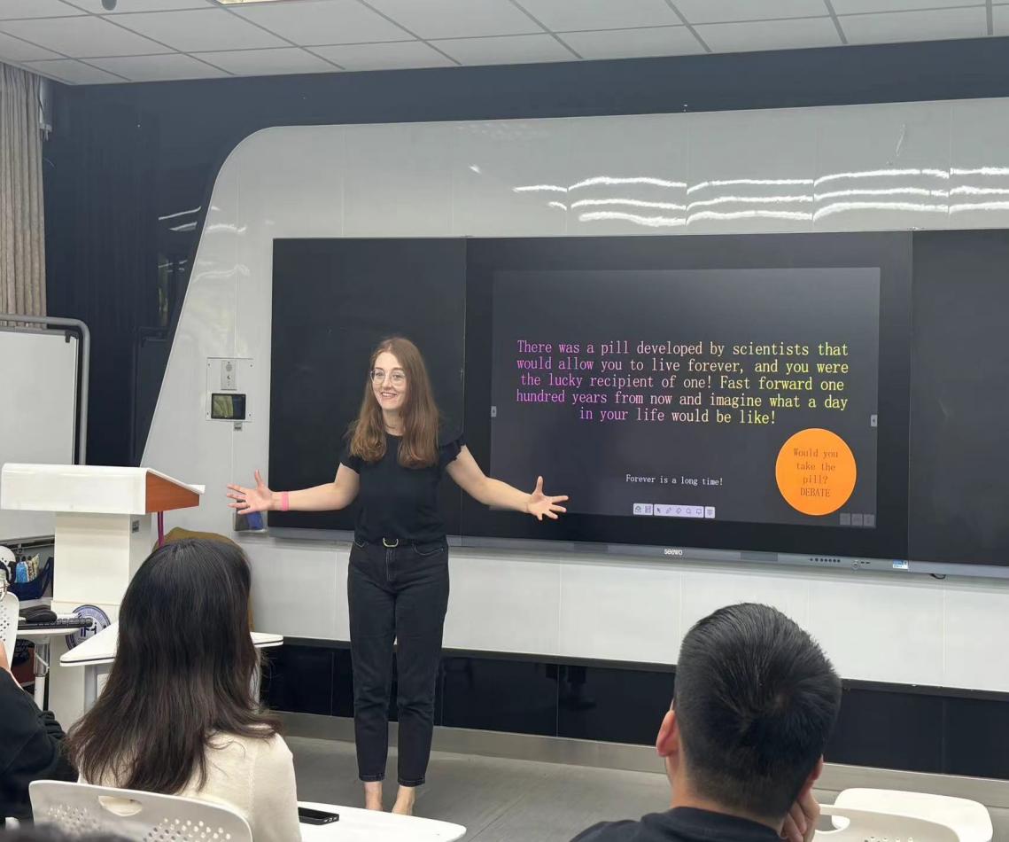 5月7日,雅思开放日的课堂给同学们提供了练习口语的机会,课堂上同学们与外教积极互动,勇敢表达自己的观点。与此同时,英语第二课堂活动每周一到周四在日华楼162室热烈地进行,包括Culture Club、Survival Guide、Chatterbox以及ESL TV Club等,由外教主导的互动活动让学生们在轻松愉快的氛围中提升英语能力。