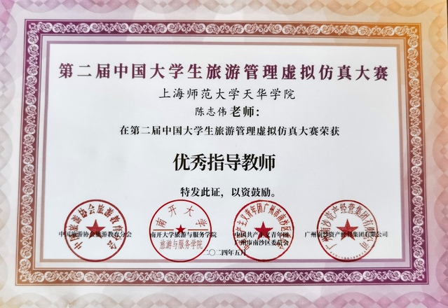 2024年5月19日,在第14个“中国旅游日”当天,由中国旅游协会旅游教育分会、南开大学旅游与服务学院联合中共广州市南沙区共青团委联合举办的第二届中国大学生旅游管理虚拟仿真大赛决赛暨“i南沙 正青春”广州南沙全域游打卡短视频挑战大赛决赛在广州南沙举行闭幕式暨颁奖典礼。