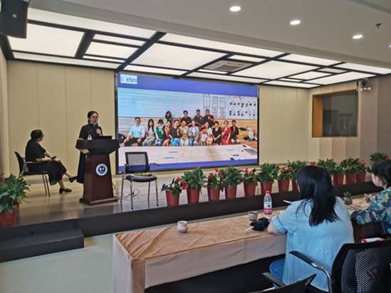 接下来,王磊姝老师用幽默风趣的语言向老师们简要介绍了整个设计与建造过程,她从设计构思“我&我们”设计理念出发,娓娓道来其中的点点滴滴,如瓢泼大雨丝毫不影响学生与居民挖土,突然而来的认领居民也没有影响和谐的种植氛围,环保、断舍离疗愈再创造宣扬了我们积极倡导的可持续的设计理念等等微小有趣的故事。我们需要从关注结果导向转向关注实践的过程导向,让公众参与社区花园从无到有的全过程。王老师提到整个花园完成的过程是一场疗愈,一切都是最好的安排——所有的过程都是为了得到完美的成果呈现。