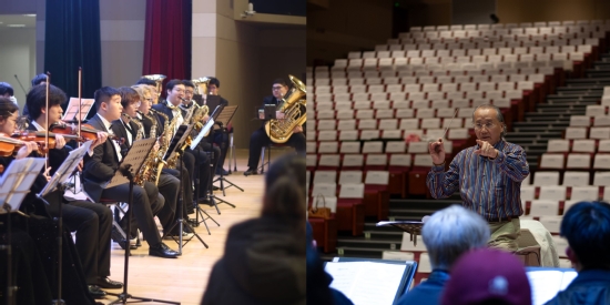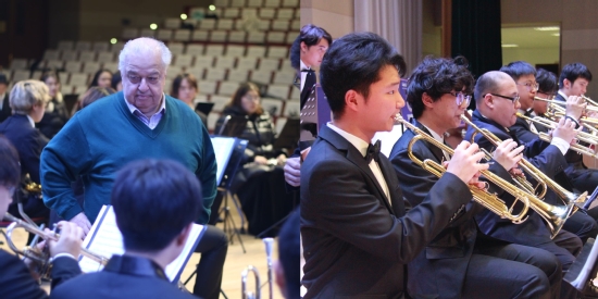 为更好的打磨作品,乐团于2023年12月邀请世界指挥大师里奥·夏巴多先生进校为乐团师生开展大师课,对每一个声部进行了详尽细致地指导,在现场对难度段落的处理进行针对性练习;2024年5月邀请到上海歌剧院一级指挥、上海音乐学院兼职教授、硕士研究生导师、上海管乐研究会会长林友声教授来校给团员们上专家课,进一步提升了乐团对本首曲目的演奏水平。该曲在2024年4月“天华之春”音乐会上首次演出,反响极好,为乐团备赛提升了信心。