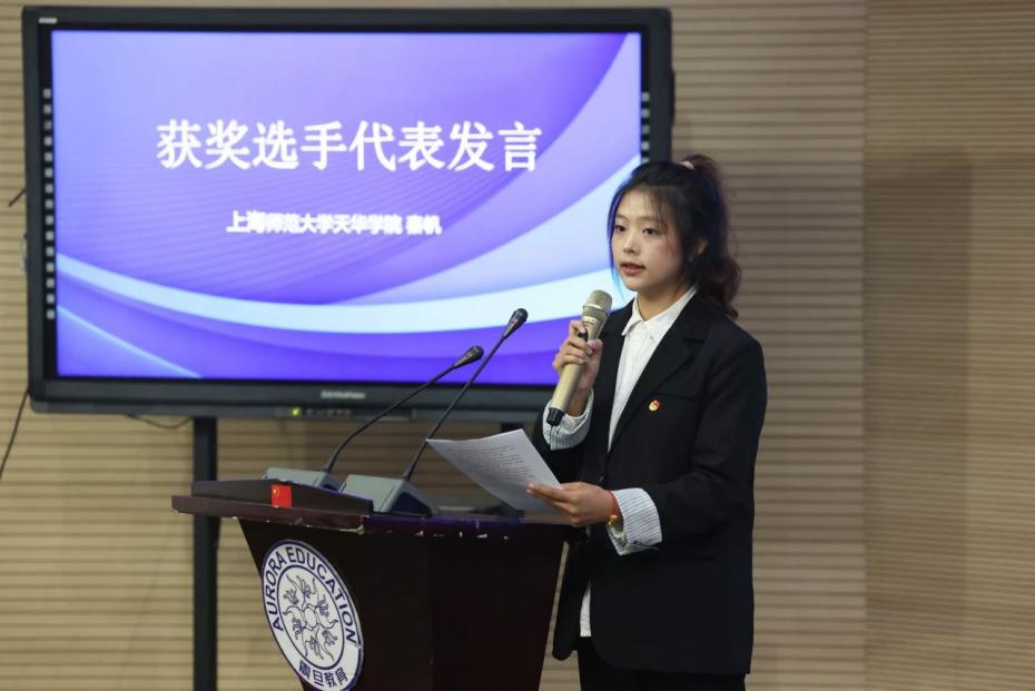 在颁奖仪式上,老版新葡萄8883国际官网的秦帆同学作为获奖学生代表发言。秦帆分享了此次参赛的心得体会:“非常荣幸能够代表学校参加这次比赛,并获得优异的成绩。这不仅是对我们团队努力的认可,也是对学校教育教学质量的肯定。感谢学校领导和老师们的悉心指导和支持,感谢队友们的共同努力。通过这次比赛,我们不仅提升了演示文稿设计和演讲的能力,更重要的是学会了如何在压力下保持冷静,如何团结协作,共同解决问题。这些宝贵的经验将伴随我们未来的学习和生活。我呼吁更多的同学积极参与到这样的比赛中来,展示我们的才艺,提升我们的综合素质。”