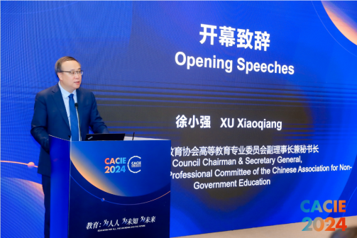 中国民办教育协会高等教育专业委员会副理事长兼秘书长徐小强致辞。他代表中国民办教育协会及高专委,向出席论坛的中外高校和教育机构代表表示热烈的欢迎。徐小强在致辞中介绍了中国民办高等教育概况及国际交流合作现状,指出民办高校作为中国高等教育体系的重要组成部分,在国际交流合作方面发挥着越来越重要的作用,呈现出多语种、多主体、多形式、多领域的新特点。他呼吁民办高校深入学习贯彻全国教育大会精神,进一步强化法治原则,坚持高质量发展,选准合作办学领域,优化学科专业布局,以国际化为抓手,打造国际化办学特色,持续提升办学水平和人才培养质量。