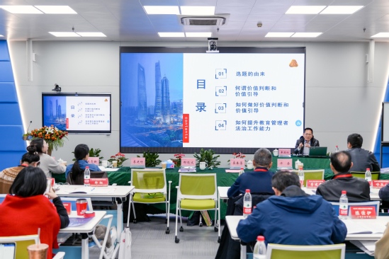 随后,上海市教委政策法规处处长郁能文发表讲话。郁能文对学校的周到会务安排表示了诚挚的谢意,与此同时强调了依法治校、依法办学在高校管理中的基础性地位。他介绍本次培训班是经过精心设计,邀请了多位专家教授进行授课,在内容上涵盖了热点事件中的价值判断、教育案件处理以及合规试点等方面的经验和举措。最后,他表示希望大家能够安心学习,深入思考,学有所得,并在各自治校中加以应用;希望通过此次培训,与会者能够进一步提升自己的法律素养和法治建设理念,为高校法治合规建设贡献出自己的一份力量。