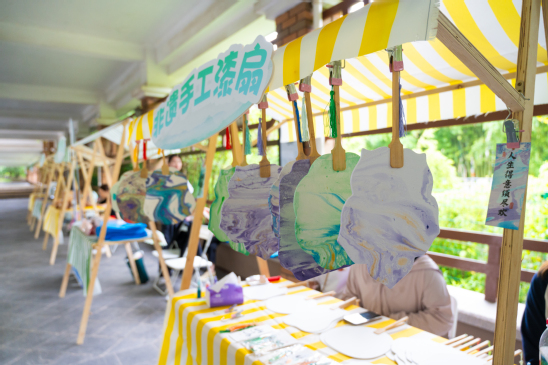 场外在学校文化长廊内,三明农特产品、非遗手工制品漆扇、彝族非遗刺绣作品展览等宣传摊位热闹非凡。