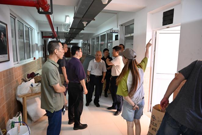 领导们深入教学与生活区域“拉网式”排查,对发现的问题当场提出整改要求。同时,提醒学校相关部门,鉴于台风可能带来强降雨,要启动应急响应预案,确保防汛沙袋、抽水泵等物资在重点区域储备充足。此外,要求后勤物业团队遇险情能迅速反应、稳妥处置。