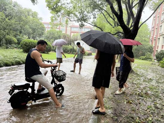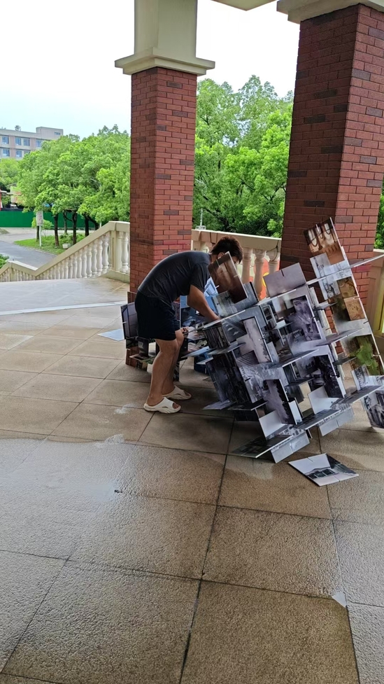 随着台风带来的强降雨持续倾泻,主校区内低洼路段迅速积水,部分下水管道因落叶、淤泥堆积出现严重堵塞。雨水在路面形成湍急的“溪流”,最深处已漫过脚踝,若不及时疏通,内涝风险将给教学楼、宿舍区等核心区域带来安全风险。关键时刻,副辅导员们挺身而出展开一场与时间赛跑的“排水保卫战”。他们不怕脏不嫌累,冒雨对全校排水系统进行紧急排查。手持铁钩、撬棍等工具,逐一打开井盖,清理堵塞的落叶、杂物,下到管道深处疏通淤积点。在齐膝深的积水中,连续奋战数小时,确保雨水快速排出,有效避免了内涝风险。