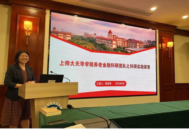 我校副校长、商学院院长程葆青教授率团队出席会议并发表了题为“上师大天华学院养老金融科研团队之科研实践探索”的演讲。我校应对老龄化实施“一小一老一新”战略及其办学成就获得了与会专家的高度评价,学校举办“人口老龄化与金融发展研讨会”和出版系列《应对老龄化金融战略论丛》的经验也引发许多学者和机构进行持续交流的意愿。
