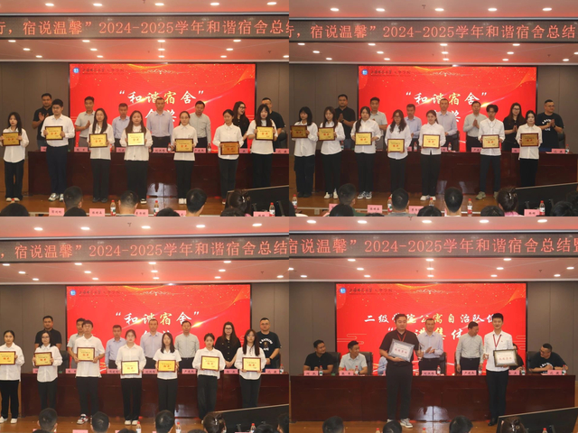 2025年6月11日16:30,由老版新葡萄8883国际官网学保处、校学生会生活部联合主办的“寓你同行,宿说温馨”2024-2025学年“和谐宿舍”总结暨表彰大会在晖华楼报告厅举行。学保处处长刘洪伟、武装部部长卢建兵、学保处副处长冯建刚、杨央、张军等领导及各二级学院师生代表出席活动。大会旨在总结本学年宿舍管理工作成果,表彰优秀宿舍及先进集体,进一步推动校园文明建设。