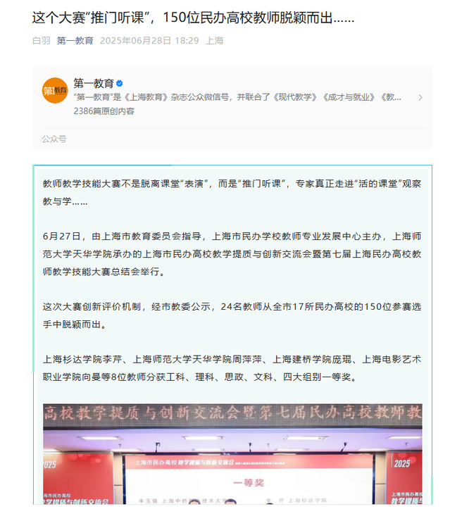 标题:这个大赛“推门听课”,150位民办高校教师脱颖而出……