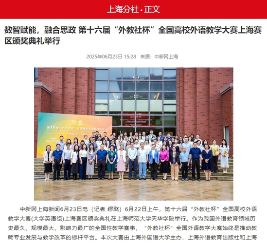 题目:数智赋能,融合思政 第十六届“外教社杯”全国高校外语教学大赛上海赛区颁奖典礼举行