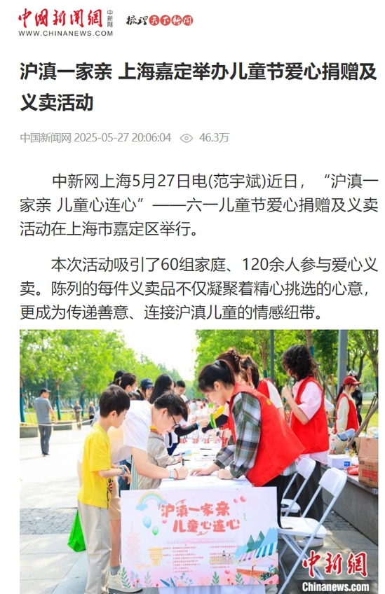 题目:沪滇一家亲 上海嘉定举办儿童节爱心捐赠及义卖活动
