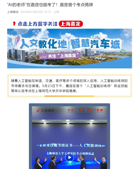上海嘉定 | “AI的老师”在嘉定也能考了!嘉定首个考点揭牌