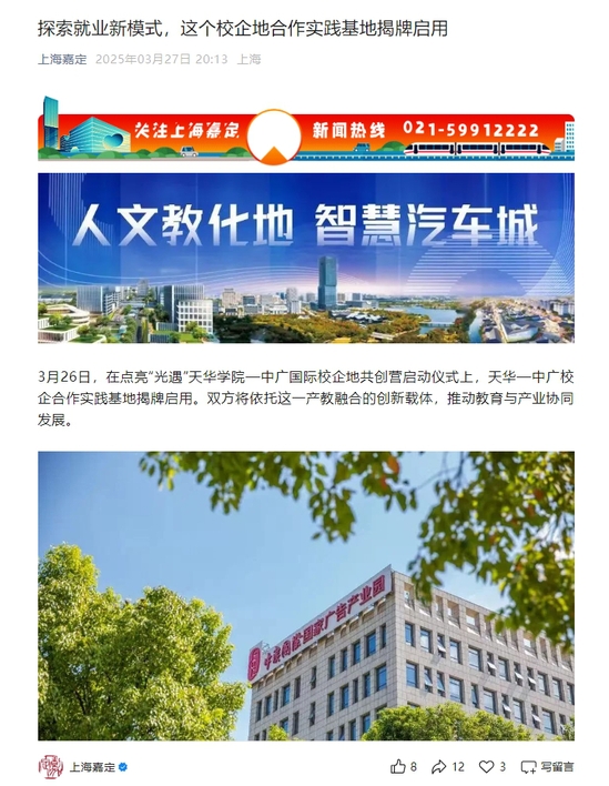 上海嘉定 | 探索就业新模式,这个校企地合作实践基地揭牌启用