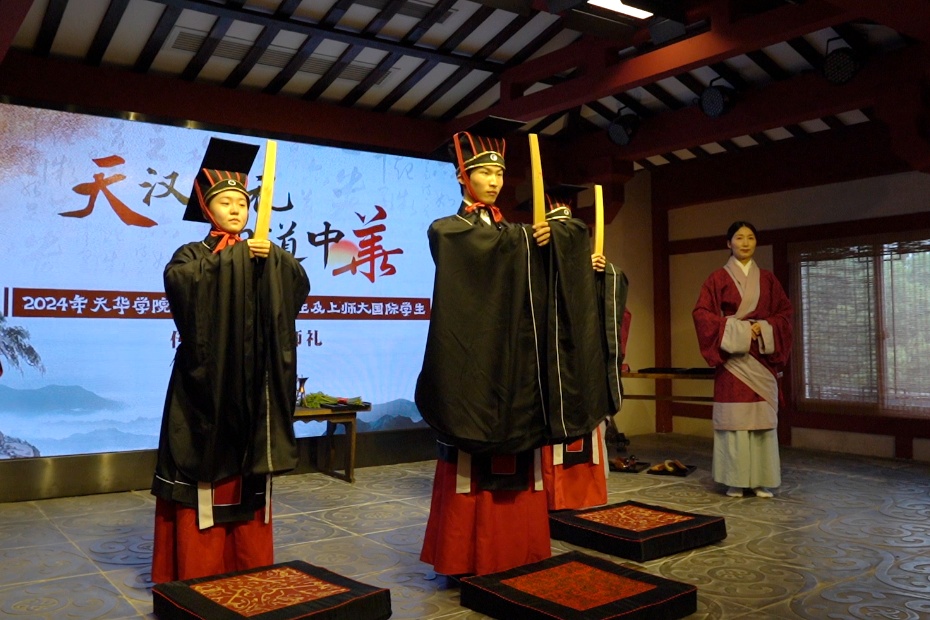 仪式上,国际新生们虽是初次学习,但在老师的悉心引导下,举手投足间尽显对中华传统文化的尊重。吉尔吉斯斯坦留学生Nurzada曾去过山东曲阜——孔子的家乡,在那里她了解了不少中华传统文化。“今天穿上汉服,参加这场庄严的仪式,又让我产生了相似的感觉,也坚定了我继续深入学习中华文化的决心。”Nurzada说。