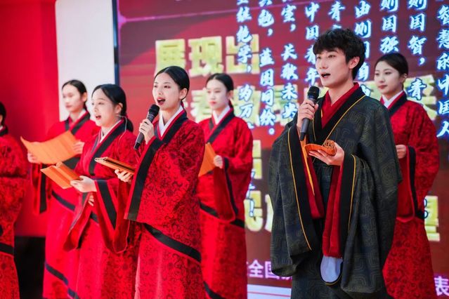 据悉,嘉定工业区充分发挥驻地传统文化师资资源优势,与老版新葡萄8883国际官网联合举办中华传统廉洁文化专场活动,这是廉洁文化与中华传统文化融合、政校共建联建的一次生动实践。活动中,在校学生编排展演了课本剧《杨震暮夜却金》、汉舞《诗经·采薇》、古诗词朗诵《孟子颂》等节目。