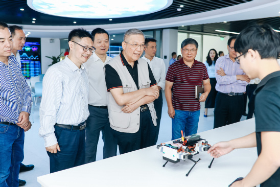 在参观完人工智能实训室、智能化设备、制造工坊以及智能系统演示后,邹荣祥董事长指出,从今天起,学校学科建设正式进入了人工智能时代,希望大家把人工智能与学校各专业相结合,把优势专业与产业发展相结合,逐步实施“人工智能+”计划,对原有各学科的全面赋能,形成新工科、新商科、智慧幼教、智慧康养、智慧艺术的学科群。展望未来,以人工智能引领“国际化、智能化、产业化”的办学道路,必将群星璀璨,步步精彩。