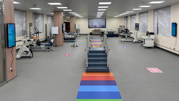 在专题汇报环节后,健康学院答英娟总书记、孙连荣副院长陪同郑州实践基地的嘉宾一行进行了实地参观考察。在孙院长的详细讲解下,嘉宾们首先参观了健康学院引以为傲的脑卒中智慧康中心。该中心配备的康复AI机器人、虚拟康复训练系统等智能化设备,以及清晰划分的手法治疗区、运动疗法区、作业治疗区,给嘉宾们留下了深刻印象。他们现场观摩了学生的实操演示,并对将前沿科技与康复实践深度融合的教学模式表示高度赞赏。这彰显了健康学院在产教研融合与实践基地建设方面取得的显著成效,标志着相关成果已成功辐射至外省市各医疗机构,形成可复制、可推广的协同育人新模式。