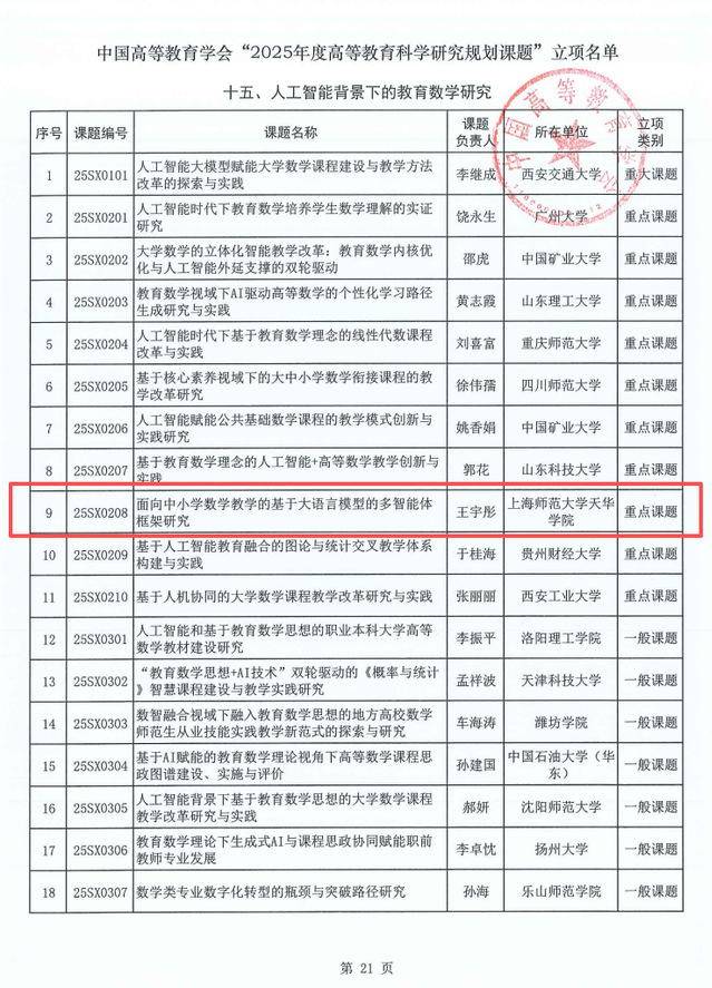 我校获批1项中国高等教育学会“2025年度高等教育科学研究规划课题”重点课题