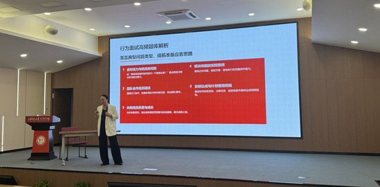 她表示,本次讲座旨在帮助同学们掌握求职策略、提升面试技巧、强化职业规划意识,为秋招做好充分准备,在竞争中稳扎稳打,赢得先机。