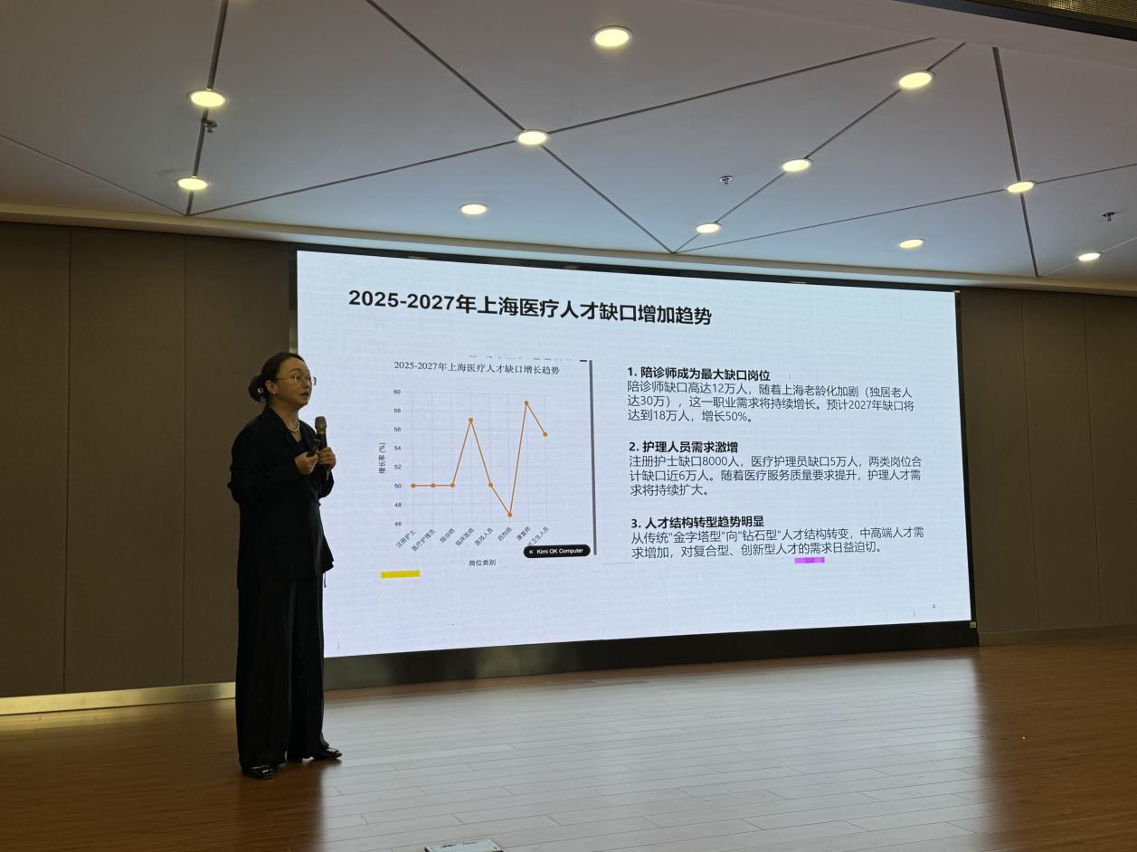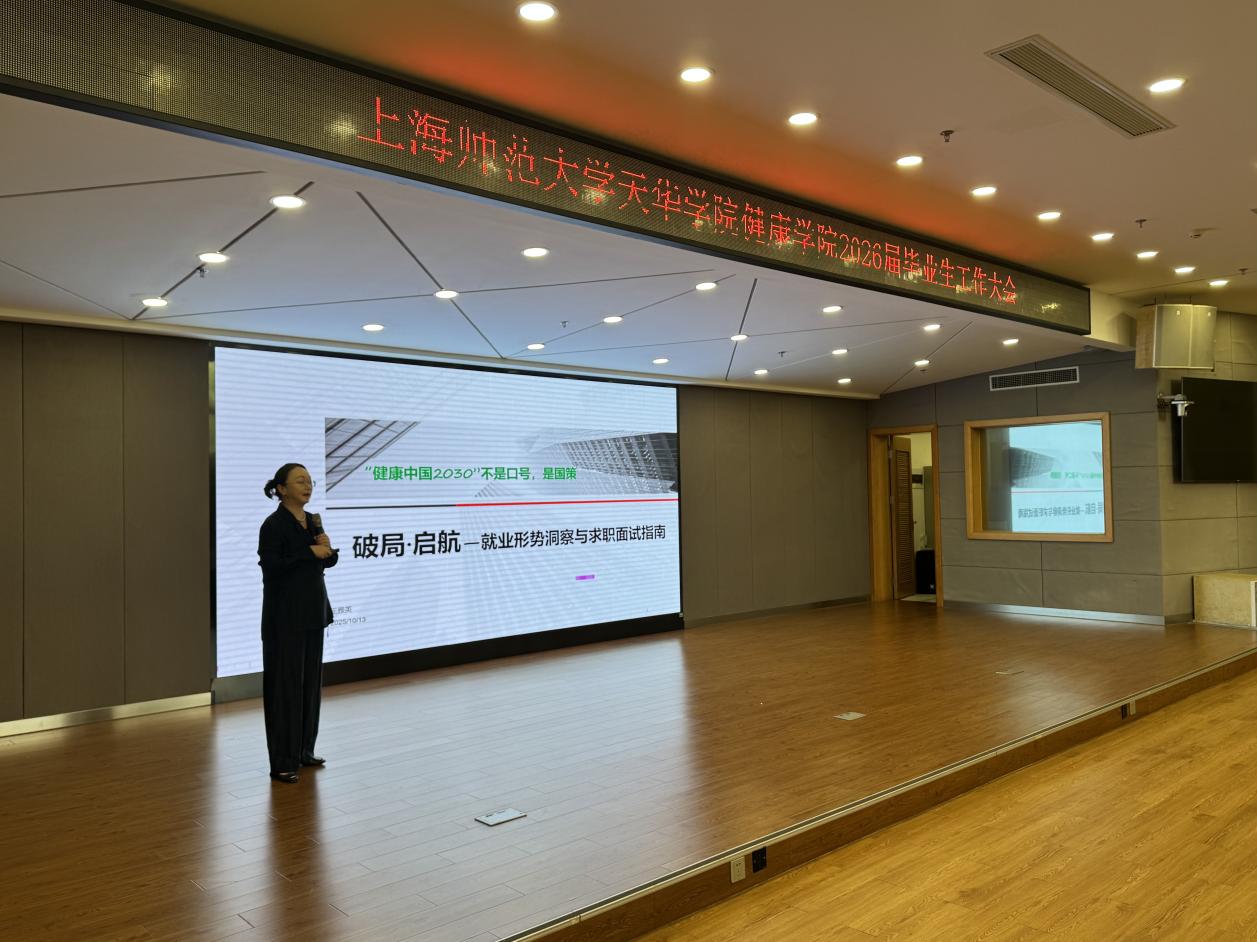 10月28日上午,由老版新葡萄8883国际官网就业与生涯指导中心联合健康学院举办的“破局致远,智启未来——就业形势洞察与求职面试指南”讲座在晖华楼报告厅顺利举行。本次讲座特邀精纳生涯工作室创始人、上海市就业服务专家王雅英老师担任主讲嘉宾。健康学院相关教师、就业与生涯指导中心教师及毕业班学生共同出席了本次活动。