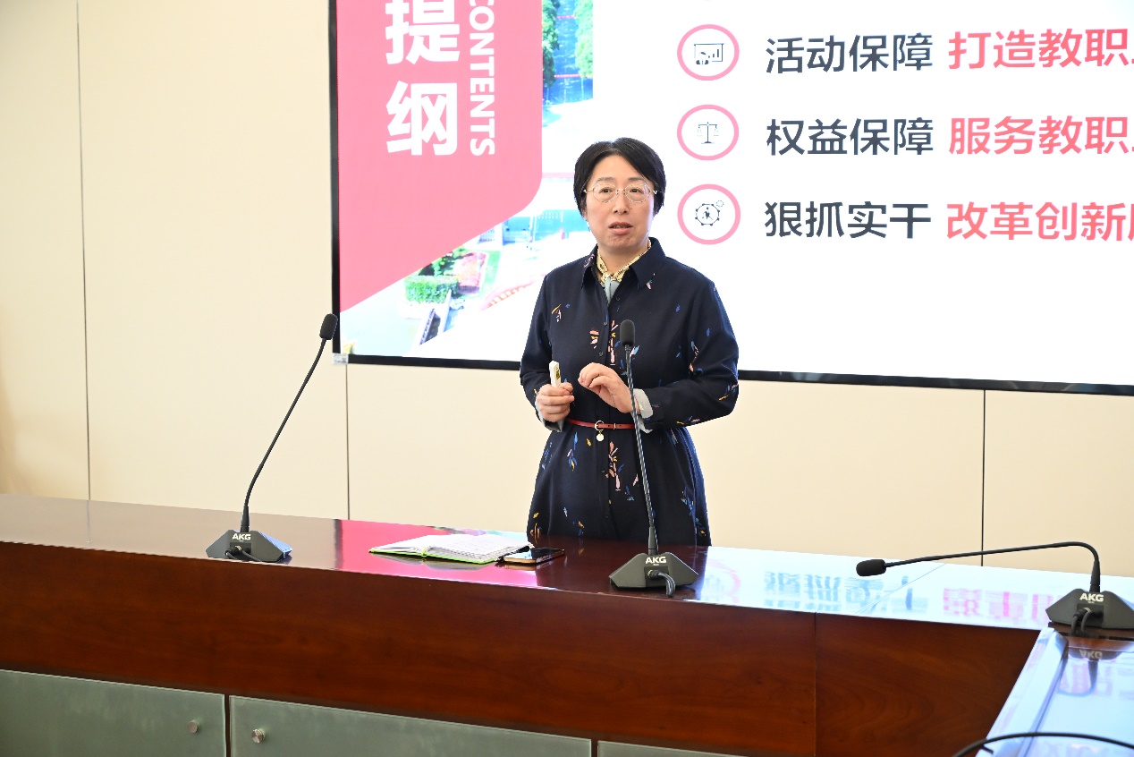 对于工会组织关怀,特别邀请工会常务副主席曹卫老师做培训,曹副主席详细介绍了工会的组织架构、职能作用以及会员的权利与义务。重点解读了工会如何在维护教职工合法权益、组织文体活动、提供福利保障、帮扶困难职工等方面发挥的“娘家人”作用。同时,曹副主席还向新教师们推荐了学校丰富的社团活动,鼓励新教师们积极投身集体,在活动中增进友谊,感受学校的温暖与活力。