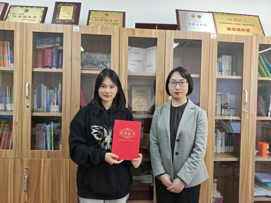 (获奖学生王银行(左)指导教师张丽珺(右))