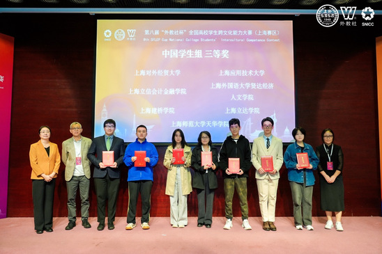 2025年11月8至9日,第八届“外教社杯”全国高校学生跨文化能力大赛(上海赛区)复赛、决赛在上海外语教育出版社顺利举行。我校学子与来自复旦大学、上海交通大学、同济大学、上海外国语大学等29所在沪高校同台竞技。