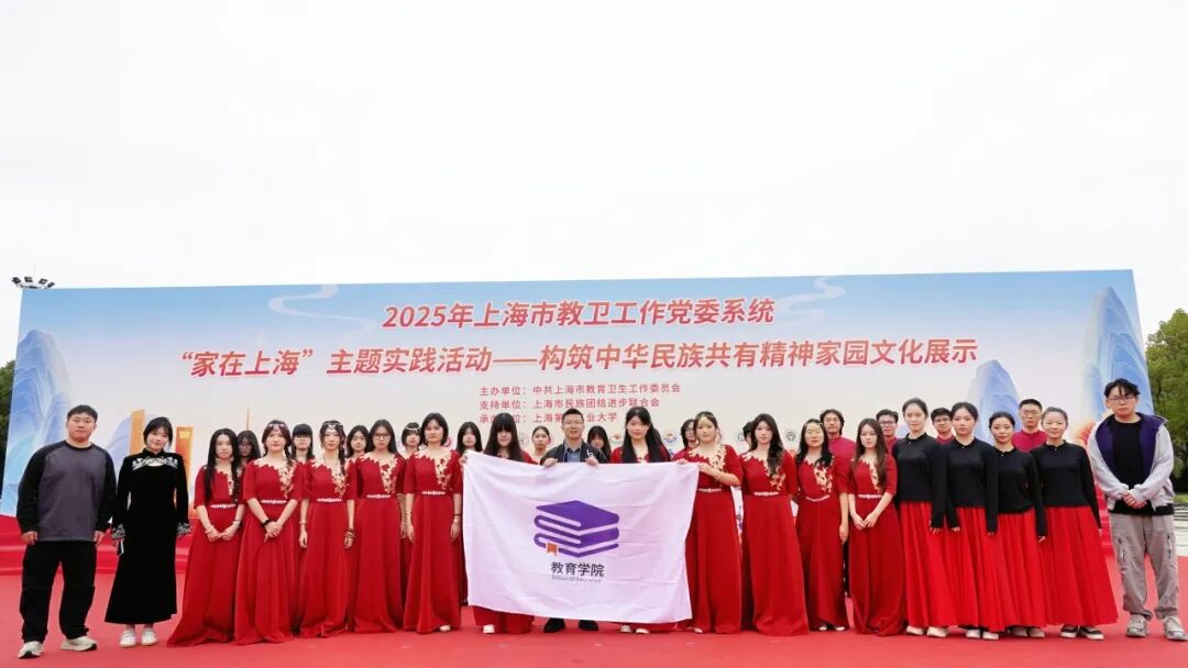 为深入学习贯彻党的二十届四中全会精神,全面落实习近平总书记关于铸牢中华民族共同体意识、做好新时代统一战线工作的重要指示精神,以文化凝心铸魂、以精神凝聚力量,11月5日,我校教育学院36名师生代表参加2025年上海市教卫工作党委系统“家在上海”主题实践活动——构筑中华民族共有精神家园文化展示活动。