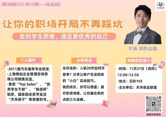 职场报告厅第13期——校友说:让你的职场开局不再踩坑——告别学生思维,遇见更优秀的自己