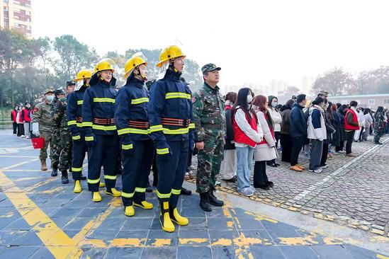经统计,从警报响起到全员集结完毕,全程仅用时7分24秒,充分展现了师生们良好的应急素养。学保处副处长张军对本次活动进行总结点评。他强调,本次实战化演练的核心意义在于将消防知识转化为实操能力,让师生在突发状况下能沉着应对、科学逃生。他呼吁全体师生将演练中的规范动作内化为日常安全意识,共同守护校园安全。