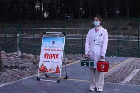 演练当日清晨,消防志愿者身着统一红马甲,在各楼栋集合点、安全通道等关键点位到位值守并设置集结标识;学保处工作人员提前备好应急物资,医护人员携带急救设备在救护区全程待命,全体筹备人员以严谨细致的态度做好各项准备工作,确保演练各环节无缝衔接。
