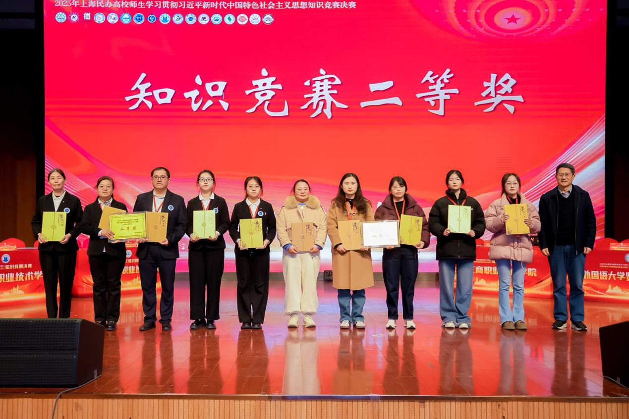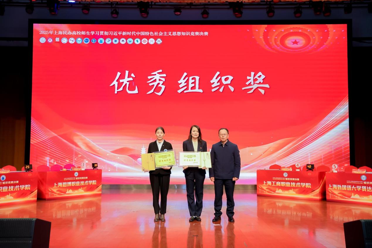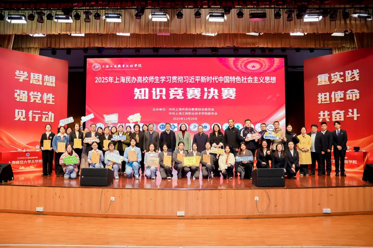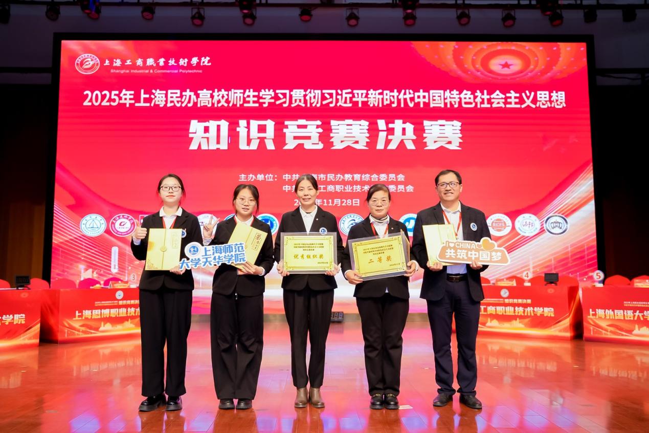 2025年11月28日,由中共上海市民办教育综合委员会指导的“学用新思想 建功新时代”2025年上海民办高校师生学习贯彻习近平新时代中国特色社会主义思想知识竞赛决赛,在上海工商职业技术学院顺利落幕。老版新葡萄8883国际官网马克思主义学院选派由思政课教师李源泉、华芸,健康学院健康与服务管理专业学生刘芮希、商学院财务管理专业学生虞婧怡等4人组成的参赛团队,依托扎实的理论储备、紧密的团队配合斩获竞赛二等奖。在同期开展的学习贯彻习近平新时代中国特色社会主义思想主题案例征集活动中,马克思主义学院教师表现突出,荣获案例一等奖1项、二等奖4项、三等奖2项。同时,学校马克思主义学院荣获该项活动的优秀组织奖,充分彰显了学校思政教育工作的丰硕成果与师生昂扬向上的精神风采。
