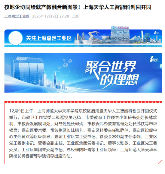 标题:校地企协同绘就产教融合新图景!上海天华人工智能科创园开园
