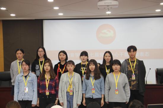 第三项议程是由教育学院第七届党建中心干部代表表态,党建干部们洪亮的誓言代表着他们坚定的决心。