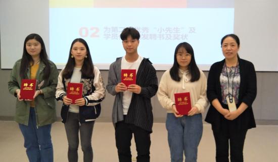 为响应学校“专、通、雅”全面化人才培养目标,推进教育学院的师德品牌建设项目,2018年10月24日下午16:30,教育学院第二期小先生强化训练营表彰大会暨第三期小先生强化训练营启动仪式在日华楼147智慧教室顺利开展。