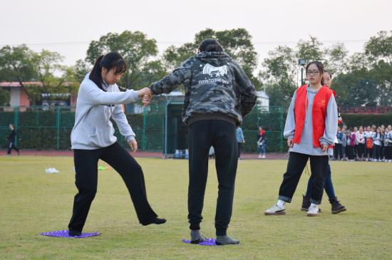 第一环节“过河拆桥”中,考验了两位参赛选手之间相互信任程度,他们需要在“指压板”这一狭小的区域内寻找一个平衡点,不断努力前进。在这一次又一次的前进中,他们需要确定一个合适的距离前进,这同时体现了学生之间的默契程度。