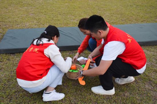 时间一到,三支队伍在志愿者的号令之下从起点出发。随着参赛选手们的出发,操场上回荡起了阵阵喝彩声。本次比赛共分为三个环节,每一个环节都考验着参赛选手们的团队意识。