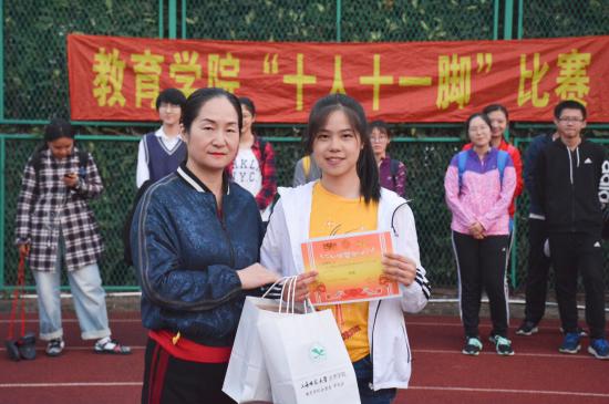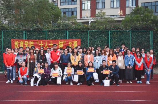 为了更好地加强班级的凝聚力,体现天华学子的团队合作精神,老版新葡萄8883国际官网教育学院分团委学生会于2018年10月17日下午4:30在大操场举行了本学期的“十人十一脚”比赛。