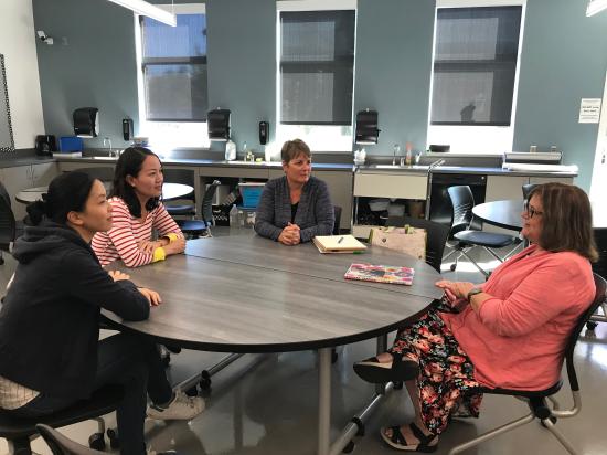 杨艳和杨悦老师西俄之行的另外一个重要目的就是拜访该项目西俄校方的负责人Cindy和Linda。在和两位外教的交谈中了解到,16级31位学生在美国一年的学习共分为4个学期,总计修满47个学分。其中,第一学期的安排包含4门专业课程,一门研讨课和8次幼儿园参观活动,共计13个学分。学生们被分为两个平行班,每班15(16)人,这种小班化授课更便于学生参与课堂活动和讨论,学习效果更好。Cindy和Linda充分肯定了15级学生的学习成果,并表示对16级的31位学生充满期待和信心。最后,杨艳老师就西俄校方对学生的照顾和教导表示感谢,希望今后两校之间能更紧密合作,培养出更多具有国际视野的优秀学前教育专业人才。
