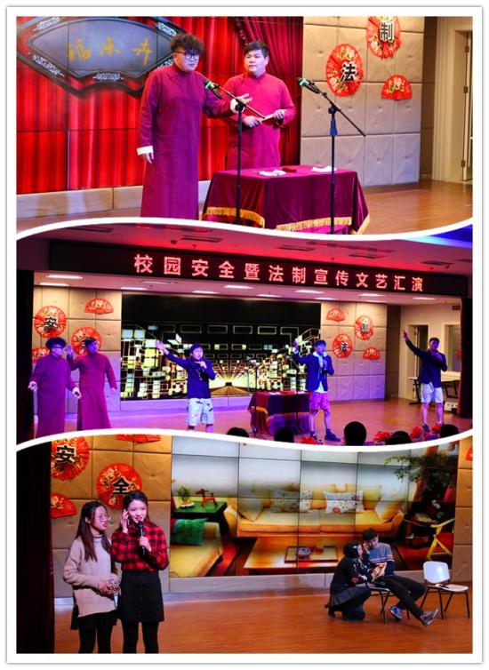 为进一步贯彻“七五”普法相关要求,提高广大师生尊法、学法、守法、用法意识,12月21日晚,由嘉定区司法局、工业区党工委、学校学保处以及各二级学院联合开展了校园安全暨法制宣传文艺汇演活动。