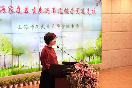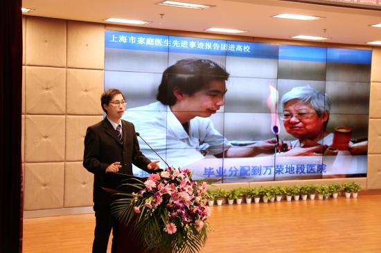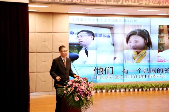 10月25日下午,由中共上海市教育卫生工作委员会、上海市教育委员会、上海市卫生和计会划生育委员联合主办,我校健康学院承办的上海市家庭医生先进事迹报告团“高校行”活动,在我校晖华楼小剧场举行。市教卫党委系统文明办副调研员俞真,我校党委副书记许岳、宣传部长齐砚奎、健康学院党总支书记蔡勇永、副书记黄璐等受邀出席报告会,健康学院各级学生及高级党校部分学员参加了此次报告会。我校党委副书记许岳致开场词,上海市健康促进中心董悦青主持报告会。