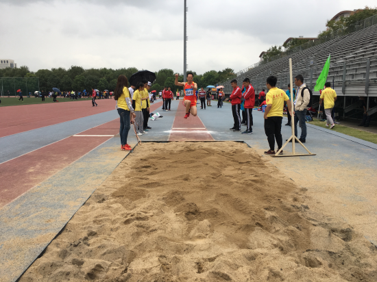 比赛当天,我校13名参赛运动员分别参加了田径项目高校B组A(青年组)、B(中年组)、C(老年组)三个组别的比赛。赛场上,队员们顶风冒雨,团结互助,顽强拼搏,战绩辉煌。男子A组比赛中,李权获得3000米跑第一名,权友良获得3000米跑第二名,韩辉获得3000米跑第六名,陈伟刚获得100米跑第一名和跳远第二名,许小康获得跳远第三名,郝庆元获得铅球比赛第二名,曹占侠获得铅球比赛第三名,权友良获得400米跑第五名;女子A组比赛中,杨婷获得400米跑第二名,1500米跑第五名。团体项目男子A组4×100米接力跑比赛中,陈伟刚、许小康、权友良和刘庆奇通力配合,获得第二名。男子B组比赛中,徐风帆获得跳远第一名,李书祥获得跳远第三名和100米跑第二名,张军获得1500米跑第二名,钟建生获得100米跑第六名和跳远第六名。男子C组比赛中,朱威获得立定跳远第三名和60米跑第五名。