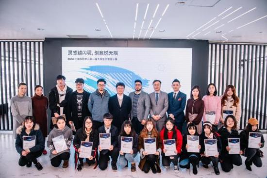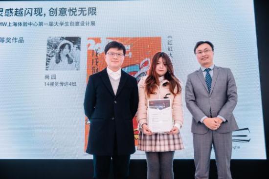 新学期伊始,艺术设计学院视觉传达设计专业就着新学气的新气象,又向外界走出了一步。2018年3月9日下午13:30,艺术设计学院视觉传达设计专业与宝马集团旗下的宝马体验中心,在上海浦东雪野路的体验活动馆召开了“灵感越闪现,创意悦无线——BMW上海体验中心第一届大学生创意设计展”并举行了此次比赛的颁奖仪式。艺术学院院长副院长徐子卿、院长助理和视觉传达设计专业主任包臻隽,实训主任周亮和比赛辅导教师范瑾、殷心悦,以及视觉专业约40多名16级的学生参加本次颁奖典礼。
