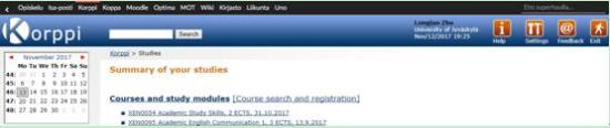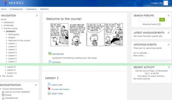 在于韦斯屈莱大学,学生与老师及学校之间的交流,除了课堂之外,主要依赖于网络和教学系统,十分便利。教务系统Korppi主要用于选课,查看上课时间、地点、教师及考试等课程信息,这个跟我校教务系统的功能相似。Moodle是专门用于师生进行教学交流的另一个系统,老师每次上课前会发布下一次的课程安排和教学内容,以便学生提前查看相关资料做好上课准备,课后老师会将上课学生参与讨论的结果、评价及课后作业发布于上。另外,学生完成的作业也需通过Moodle提交,因此该系统使用率极高。