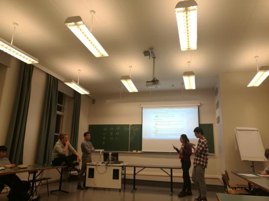 开学前,于韦斯屈莱大学信息学院专门为我们举办了欢迎晚宴,并安排Kati博士指导制定我们的学习计划,全程帮助我们解决一切学习和生活上的问题。开学初,根据Kati博士的建议,我们从由信息学院开设并采用英语授课的专业课程中,选择了与自身专业相关的多门课程进行学习,以加强专业知识,最重要的是感受欧洲高校的教学方法和课堂开展模式。另外,我们还选择了由人文学院语言中心开设的学术交流和学术研究方法相关的两门英语课程,这些课程对于今后我们自身的学术开展有重要意义。与此同时,Kati博士还结合具体的课题指导我们进行学术研究,了解芬兰的高教体系等相关情况,争取能充分利用有限的时间,汲取更多有用信息,开拓眼界,切实提高自身的教学和科研能力。