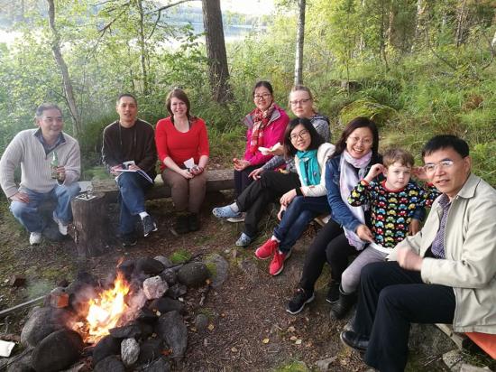 (在Kati博士的邀请下,和来自西安交大的访问教授一起感受芬兰的湖边篝火)