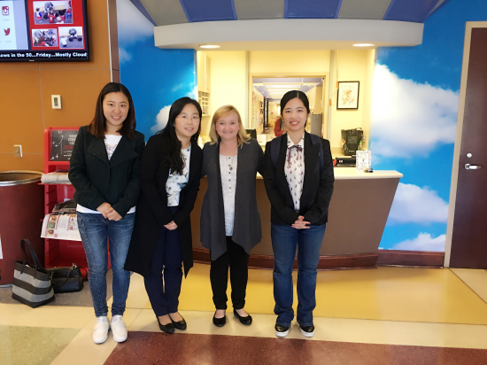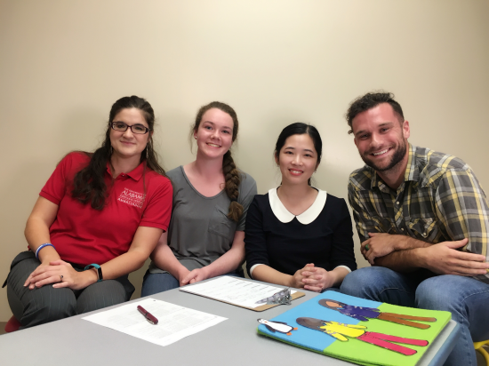 (访学团胡雅楠老师与Dr. Scofield儿童语言发展项目的科研团队合影。左起:博士生Cantaya,本科生Chris以及硕士生Joshua)