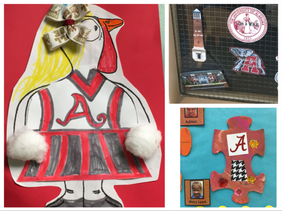(幼儿绘画作品中阿拉巴马大学标志元素的使用,以及班级环境创设中的大学标志元素)